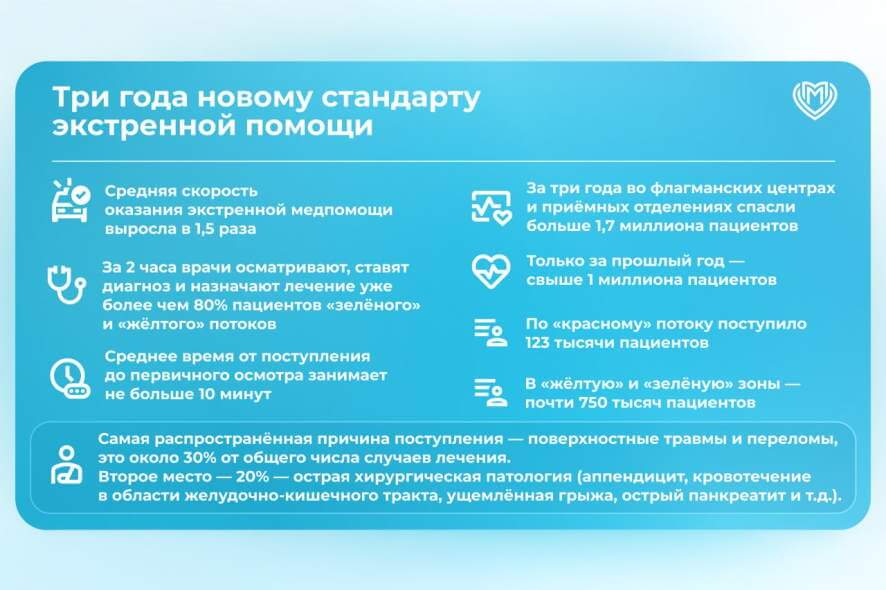 В итоге пациенты столичных больниц получают своевременную, высокопрофессиональную медпомощь — точно, быстро и с заботой.