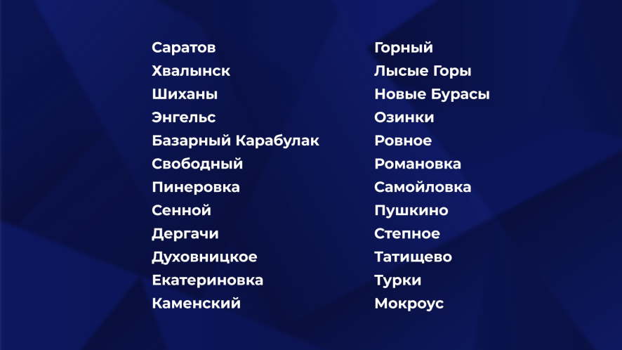 В реестр включены городские и сельские опорные населенные пункты во всех районах Саратовской области.