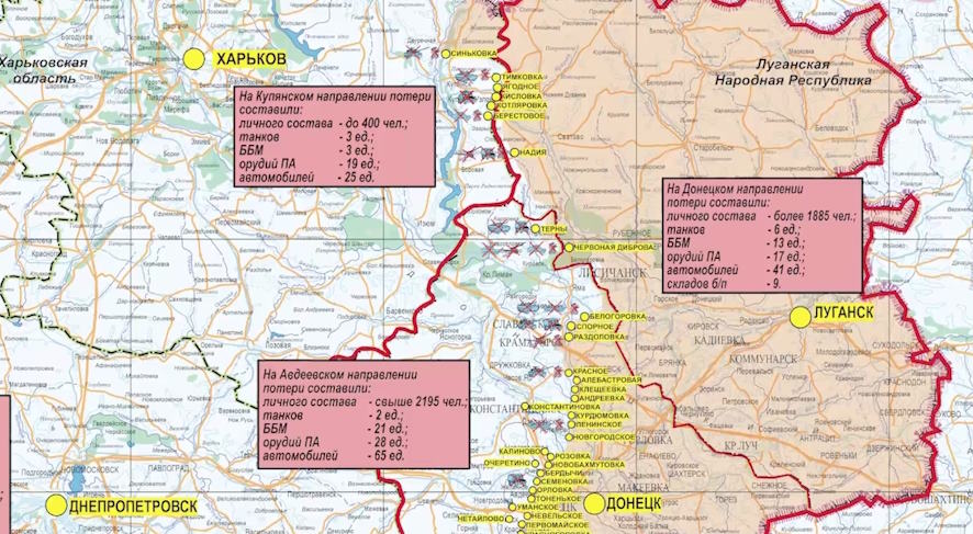 За неделю на данном направлении ВСУ потеряли свыше 2195 военнослужащих, два танка, 21 боевую бронированную машину, 65 автомобилей и 28 орудий полевой артиллерии.