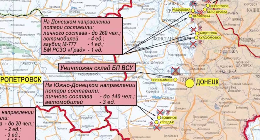 В районах н.п. Васюковка, Андреевка, Раздоловка и Курдюмовка (ДНР) подразделениями «Южной» группировки войск во взаимодействии с авиацией и артиллерией нанесено поражение живой силе и технике противника