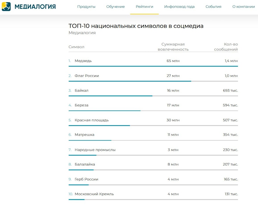 Цифра ошеломляет: 65 миллионов вовлечений. Медведь не просто лидер — он абсолютный гегемон символьного поля. Но почему именно он, а не, скажем, двуглавый орёл?